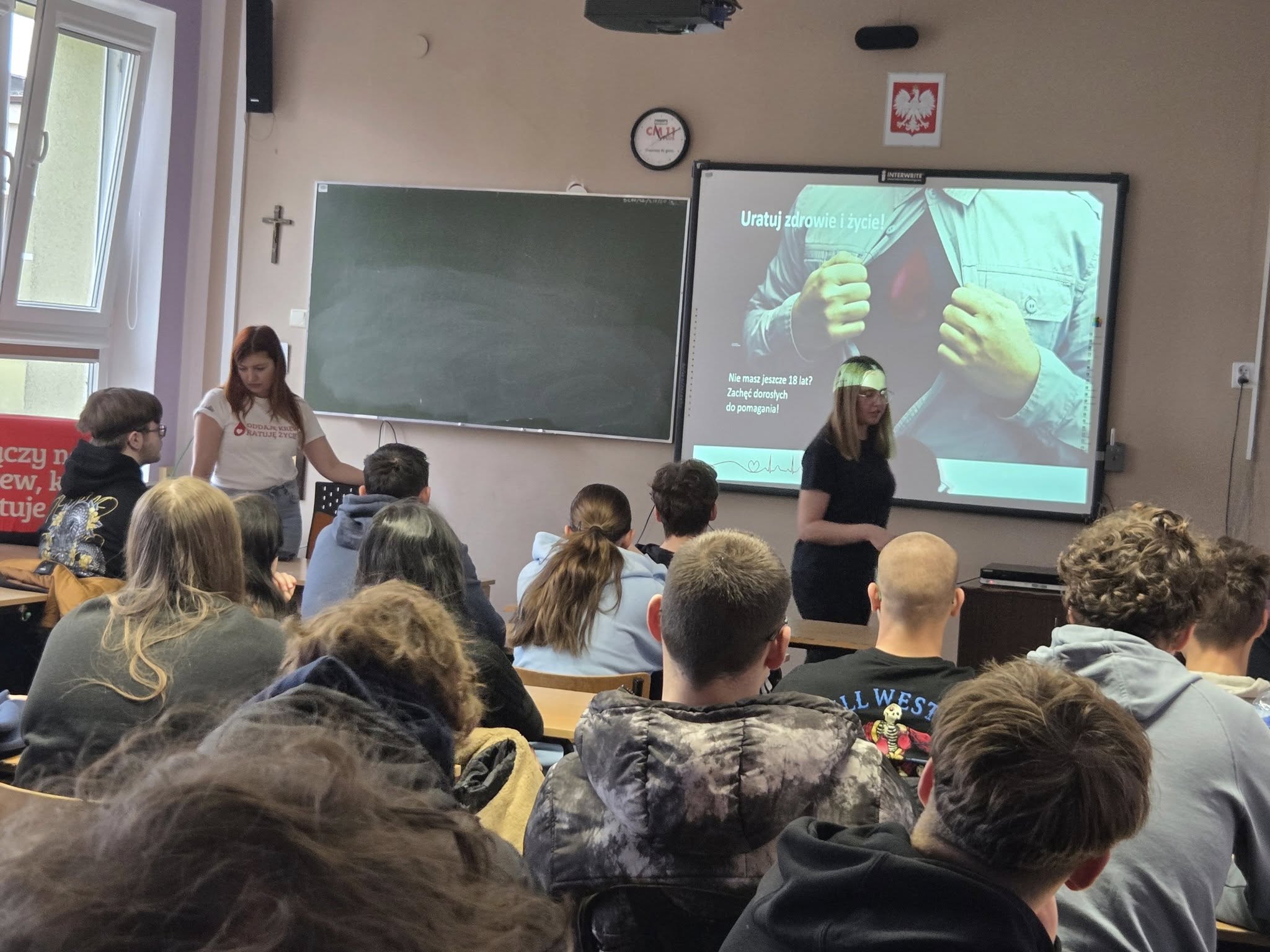 W dniu 18 listopada 2025r. uczniowie czwartych klas z naszej szkoły uczestniczyli w wydarzeniu pt.: Bo tętni w nas dobro, promującym honorowe krwiodawstwo, które odbyło się w naszej szkole w Słupsku. To kolejna z akcji kampanii Twoja krew, moje życie, prowadzonej przez RCKiK w Słupsku. Akcja ma na celu propagowanie bezinteresownej pomocy oraz przedstawienie aspektów dotyczących honorowego oddawania krwi jak również zachęcenie młodych ludzi do pomagania innym. Uczniowie z zainteresowaniem wysłuchali wykładu, mając nadzieję, że większa część z nich w przyszłości będzie mogła pomagać innym honorowo oddając swoją krew. Wielkie podziękowania dla pań przedstawicielek RCKiK w Słupsku, prowadzących bardzo interesujące wydarzenie.