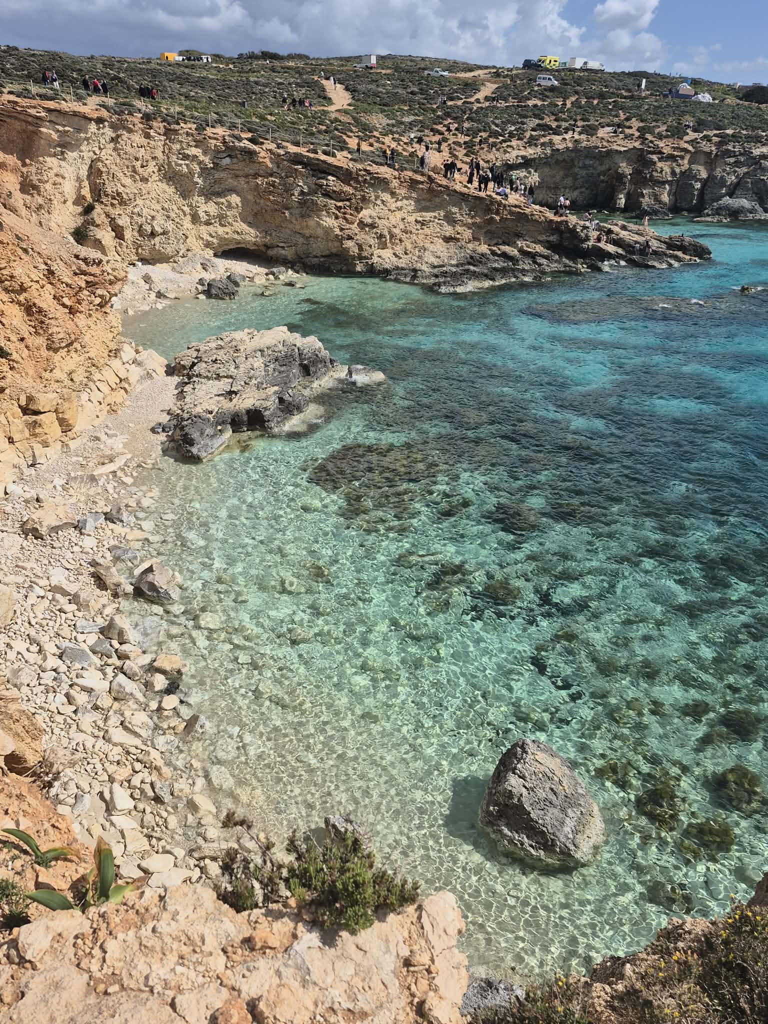Wisienka na torcie! Rejs promem na Gozo, a potem krystalicznie czysta woda w Blue Lagoon na wyspie Comino. Turkus morza wyglądał tu niemal nierealnie – idealne zakończenie naszej wyprawy przed powrotem do domu.